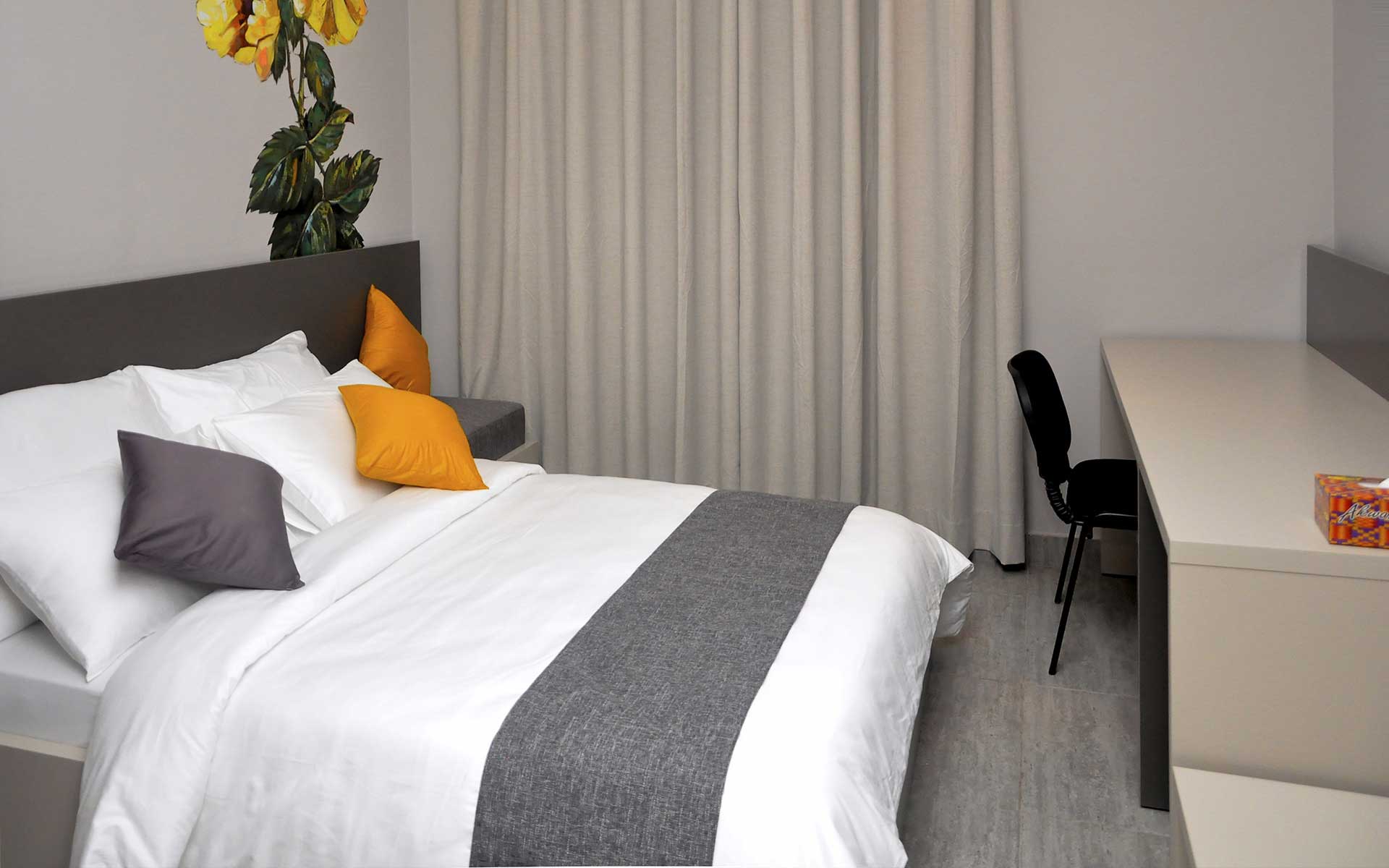 Provide mainly telephones, TV sets, Internet access within and around the hotel, 24 hour security cameras, Mini bar, cookers, microwaves, kettles (depending on the room type). We also offer laundry services.